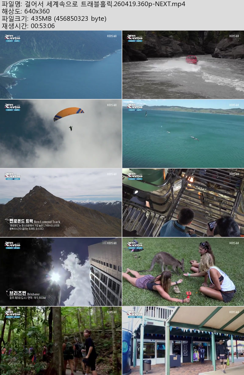 방송/동영상 방송/동영상 걸어서 세계속으로 트래블홀릭.260419.360p-NEXT 우야쓰꼬 2026.04.22 6,882 334 다운로드 추천 334 북마크 공유 다운로드 파일 · 1개 걸어서 세계속으로 트래블홀릭.260419.360p-NEXT.mp4 FILE 435.7M 다운로드 TAGS #걸어서 #세계속으로 #트래블홀릭 #NEXT