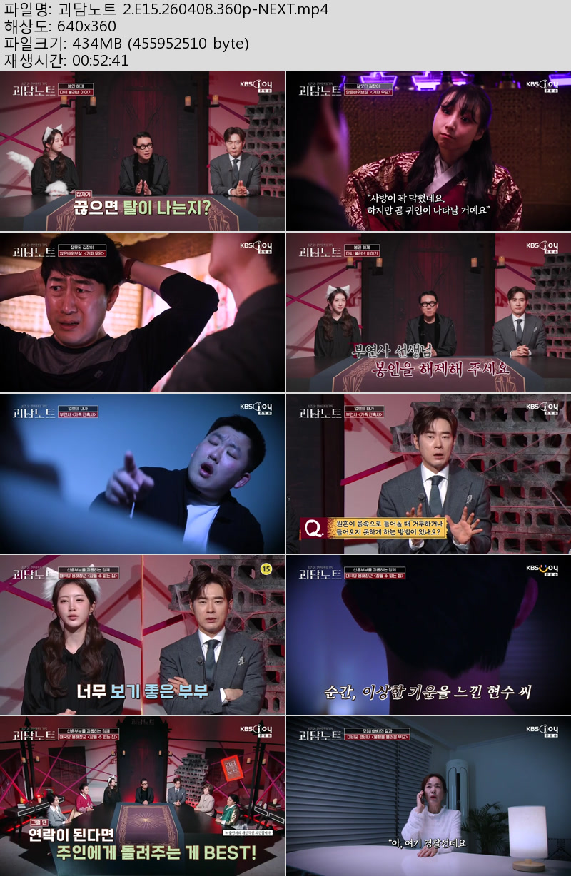 방송/동영상 방송/동영상 괴담노트 2.E15.260408.360p-NEXT 우야쓰꼬 2026.04.24 6,163 291 다운로드 추천 291 북마크 공유 다운로드 파일 · 1개 괴담노트 2.E15.260408.360p-NEXT.mp4 FILE 434.8M 다운로드 TAGS #괴담노트 #E15 #NEXT