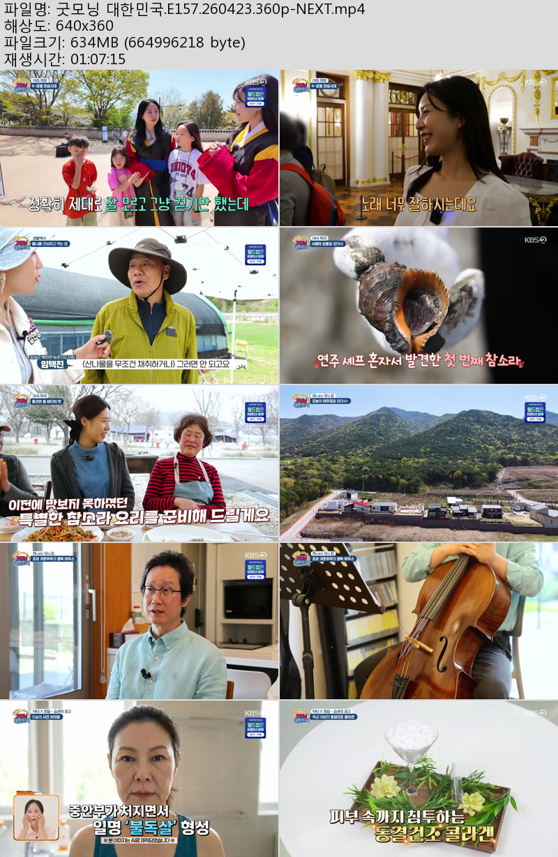 방송/동영상 방송/동영상 굿모닝 대한민국.E157.260423.360p-NEXT 우야쓰꼬 2026.04.23 7,505 229 다운로드 추천 229 북마크 공유 다운로드 파일 · 1개 굿모닝 대한민국.E157.260423.360p-NEXT.mp4 FILE 634.2M 다운로드 TAGS #굿모닝 #대한민국 #E157 #NEXT
