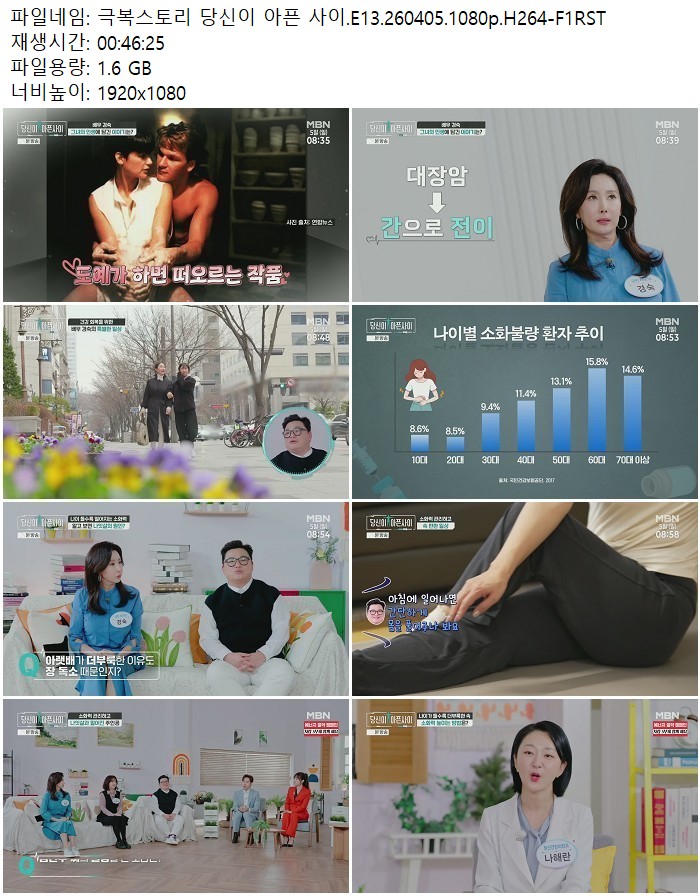 방송/동영상 방송/동영상 극복스토리 당신이 아픈 사이.E13.260405.1080p.H264 디스사랑 2026.04.24 5,103 375 다운로드 추천 375 북마크 공유 다운로드 파일 · 1개 극복스토리 당신이 아픈 사이.E13.260405.1080p.H264-F1RST.mp4 FILE 1.6G 다운로드 TAGS #극복스토리 #당신이 #아픈 #사이 #E13