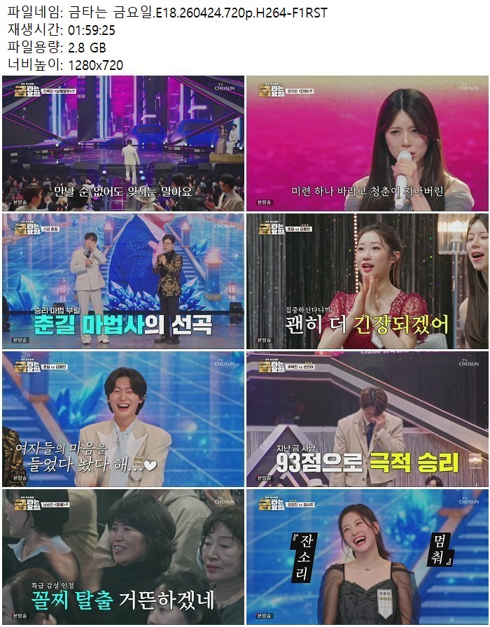 방송/동영상 방송/동영상 금타는 금요일.E18.260424.720p.H264 디스사랑 2026.04.25 6,447 205 다운로드 추천 205 북마크 공유 다운로드 파일 · 1개 금타는 금요일.E18.260424.720p.H264-F1RST.mp4 FILE 2.8G 다운로드 TAGS #금타는 #금요일 #E18 #H264 #F1RST