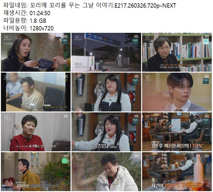 방송/동영상 방송/동영상 꼬리에 꼬리를 무는 그날 이야기.E217.260326.720p-NEXT zndhkgkgk 2026.04.24 7,652 249 다운로드 추천 249 북마크 공유 다운로드 파일 · 1개 꼬리에 꼬리를 무는 그날 이야기.E217.260326.720p-NEXT.mp4 FILE 1.8G 다운로드 TAGS #꼬리에 #꼬리를 #무는 #그날 #이야기