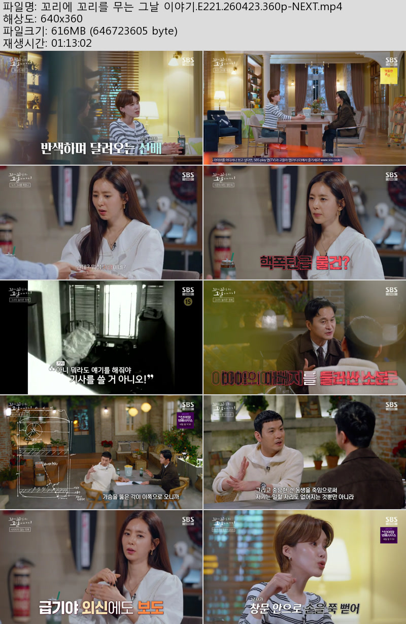 방송/동영상 방송/동영상 꼬리에 꼬리를 무는 그날 이야기.E221.260423.360p-NEXT 우야쓰꼬 2026.04.23 5,057 454 다운로드 추천 454 북마크 공유 다운로드 파일 · 1개 꼬리에 꼬리를 무는 그날 이야기.E221.260423.360p-NEXT.mp4 FILE 616.8M 다운로드 TAGS #꼬리에 #꼬리를 #무는 #그날 #이야기