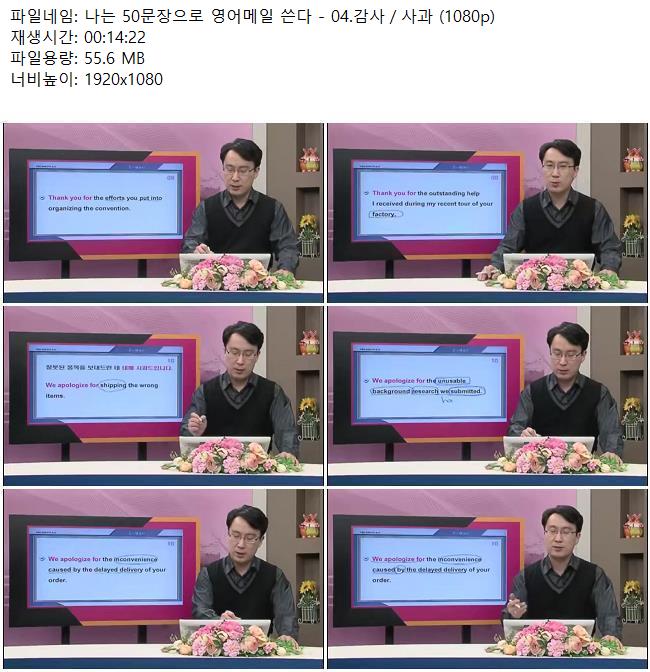애니메이션 애니메이션 나는 50문장으로 영어메일 쓴다 - 04.감사/사과 (1080p) 쿠무 2026.04.24 7,828 295 다운로드 추천 295 북마크 공유 다운로드 파일 · 1개 나는 50문장으로 영어메일 쓴다 - 04.감사/사과 (1080p).mkv FILE 55.6M 다운로드 TAGS #나는 #50문장으로 #영어메일 #쓴다 #감사/사과