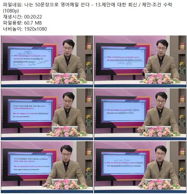 애니메이션 애니메이션 나는 50문장으로 영어메일 쓴다 - 13.제안에 대한 회신/제안·조건.. 쿠무 2026.04.24 5,214 213 다운로드 추천 213 북마크 공유 다운로드 파일 · 1개 나는 50문장으로 영어메일 쓴다 - 13.제안에 대한 회신/제안·조건 수락 .. FILE 60.7M 다운로드 TAGS #나는 #50문장으로 #영어메일 #쓴다 #제안에