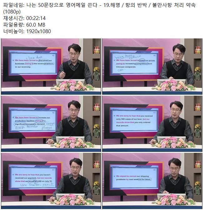 애니메이션 애니메이션 나는 50문장으로 영어메일 쓴다 - 19.해명/항의 반박/불만사항 .. 쿠무 2026.04.24 7,303 468 다운로드 추천 468 북마크 공유 다운로드 파일 · 1개 나는 50문장으로 영어메일 쓴다 - 19.해명/항의 반박/불만사항 처리 약.. FILE 60.0M 다운로드 TAGS #나는 #50문장으로 #영어메일 #쓴다 #해명/항의