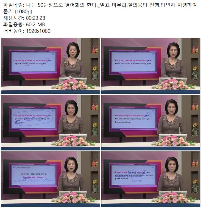 애니메이션 애니메이션 나는 50문장으로 영어회의 한다._발표 마무리.질의응답 진행.답변.. 쿠무 2026.04.24 5,102 410 다운로드 추천 410 북마크 공유 다운로드 파일 · 1개 나는 50문장으로 영어회의 한다._발표 마무리.질의응답 진행.답변자 지명.. FILE 60.2M 다운로드 TAGS #나는 #50문장으로 #영어회의 #한다 #발표
