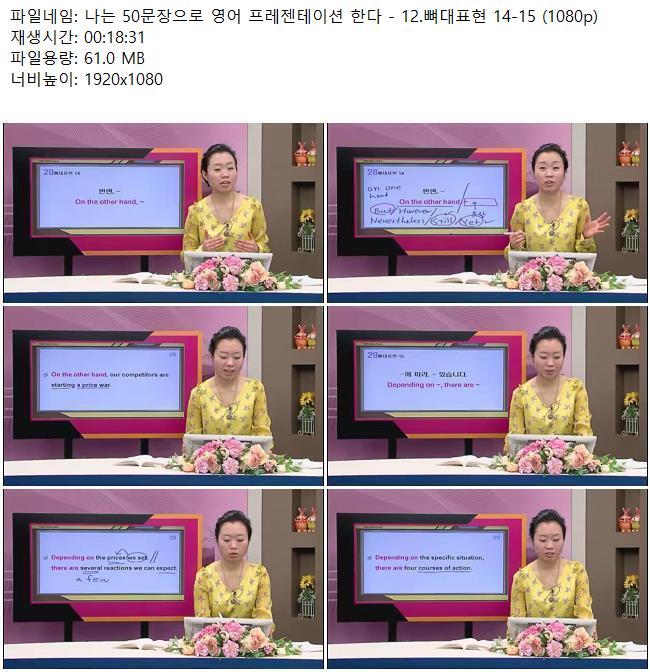 애니메이션 애니메이션 나는 50문장으로 영어 프레젠테이션 한다 - 12.뼈대표현 14-15 (10.. 쿠무 2026.04.24 6,565 272 다운로드 추천 272 북마크 공유 다운로드 파일 · 1개 나는 50문장으로 영어 프레젠테이션 한다 - 12.뼈대표현 14-15 (1080p).mkv FILE 61.0M 다운로드 TAGS #나는 #50문장으로 #영어 #프레젠테이션 #한다