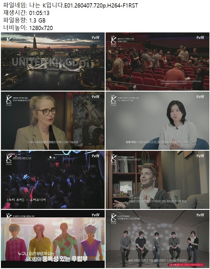 방송/동영상 방송/동영상 나는 K입니다.E01.260407.720p.H264 디스사랑 2026.04.24 6,473 319 다운로드 추천 319 북마크 공유 다운로드 파일 · 1개 나는 K입니다.E01.260407.720p.H264-F1RST.mp4 FILE 1.3G 다운로드 TAGS #나는 #K입니다 #E01 #H264 #F1RST