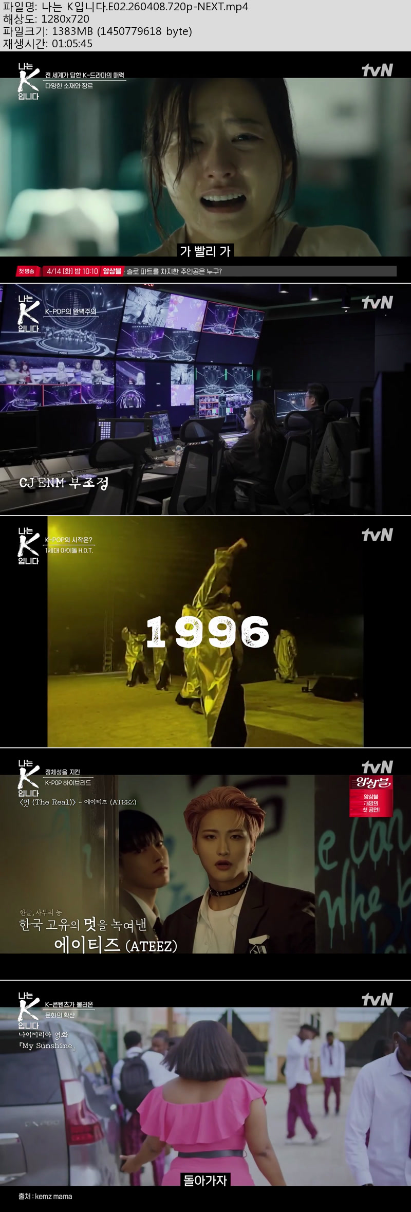 방송/동영상 방송/동영상 나는 K입니다.E02.260408.720p-NEXT 방송다좋아 2026.04.24 7,244 390 다운로드 추천 390 북마크 공유 다운로드 파일 · 1개 나는 K입니다.E02.260408.720p-NEXT.mp4 FILE 1.4G 다운로드 TAGS #나는 #K입니다 #E02 #NEXT