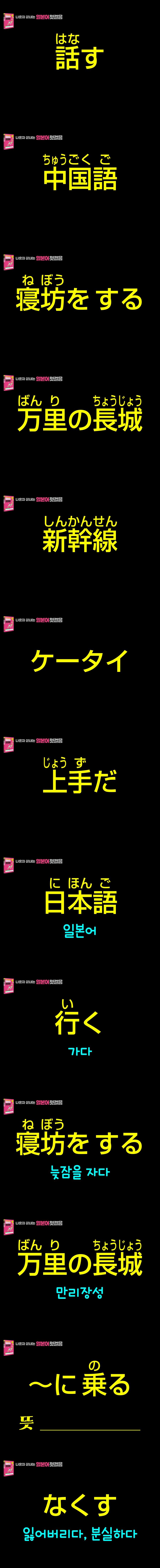 애니메이션 애니메이션 [나혼자끝내는일본어첫걸음] 단어암기 동영상 Day 17 jibori 2026.04.24 4,217 213 다운로드 추천 213 북마크 공유 다운로드 파일 · 1개 [나혼자끝내는일본어첫걸음] 단어암기 동영상 Day 17.mp4 FILE 15.7M 다운로드 TAGS #나혼자끝내는일본어첫걸음 #단어암기 #동영상 #Day