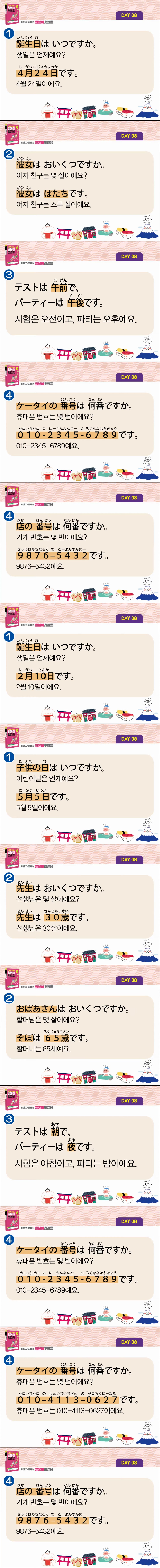 애니메이션 애니메이션 [나혼자끝내는일본어첫걸음] 복습용 동영상 Day 08 jibori 2026.04.24 6,416 440 다운로드 추천 440 북마크 공유 다운로드 파일 · 1개 [나혼자끝내는일본어첫걸음] 복습용 동영상 Day 08.mp4 FILE 56.8M 다운로드 TAGS #나혼자끝내는일본어첫걸음 #복습용 #동영상 #Day