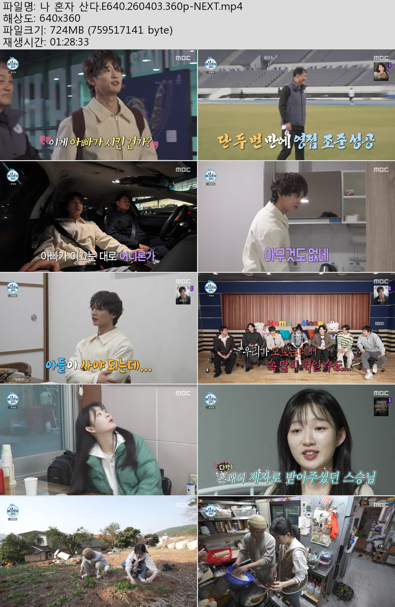 방송/동영상 방송/동영상 나 혼자 산다.E640.260403.360p-NEXT 우야쓰꼬 2026.04.24 7,359 362 다운로드 추천 362 북마크 공유 다운로드 파일 · 1개 나 혼자 산다.E640.260403.360p-NEXT.mp4 FILE 724.3M 다운로드 TAGS #혼자 #산다 #E640 #NEXT