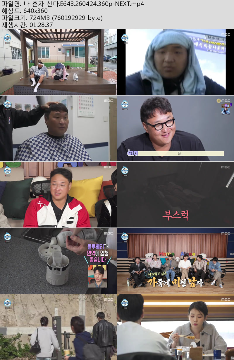 방송/동영상 방송/동영상 나 혼자 산다.E643.260424.360p-NEXT 우야쓰꼬 2026.04.25 5,407 476 다운로드 추천 476 북마크 공유 다운로드 파일 · 1개 나 혼자 산다.E643.260424.360p-NEXT.mp4 FILE 725.0M 다운로드 TAGS #혼자 #산다 #E643 #NEXT