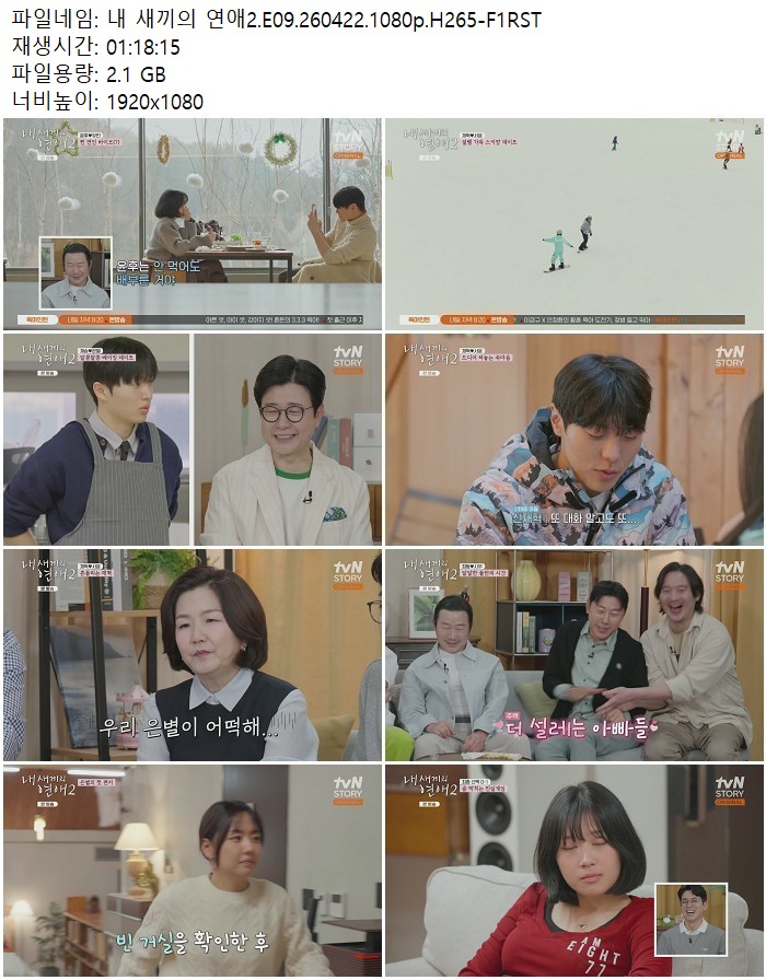 방송/동영상 방송/동영상 내 새끼의 연애2.E09.260422.1080p.H265 디스사랑 2026.04.23 7,069 270 다운로드 추천 270 북마크 공유 다운로드 파일 · 1개 내 새끼의 연애2.E09.260422.1080p.H265-F1RST.mp4 FILE 2.1G 다운로드 TAGS #새끼의 #연애2 #E09 #H265 #F1RST