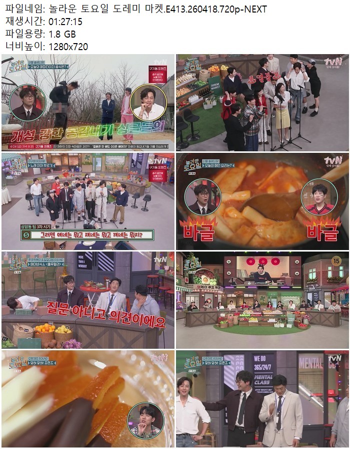 방송/동영상 방송/동영상 놀라운 토요일 도레미 마켓.E413.260418.720p-NEXT 디스사랑 2026.04.22 6,800 465 다운로드 추천 465 북마크 공유 다운로드 파일 · 1개 놀라운 토요일 도레미 마켓.E413.260418.720p-NEXT.mp4 FILE 1.8G 다운로드 TAGS #놀라운 #토요일 #도레미 #마켓 #E413