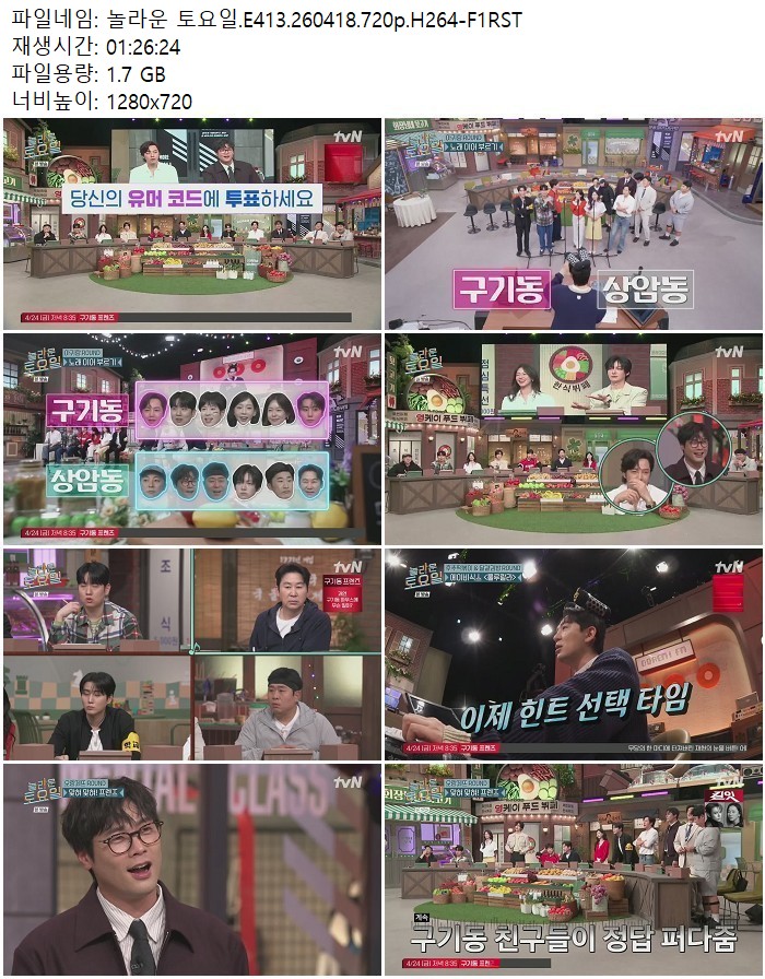 방송/동영상 방송/동영상 놀라운 토요일.E413.260418.720p.H264 디스사랑 2026.04.22 7,162 424 다운로드 추천 424 북마크 공유 다운로드 파일 · 1개 놀라운 토요일.E413.260418.720p.H264-F1RST.mp4 FILE 1.7G 다운로드 TAGS #놀라운 #토요일 #E413 #H264 #F1RST