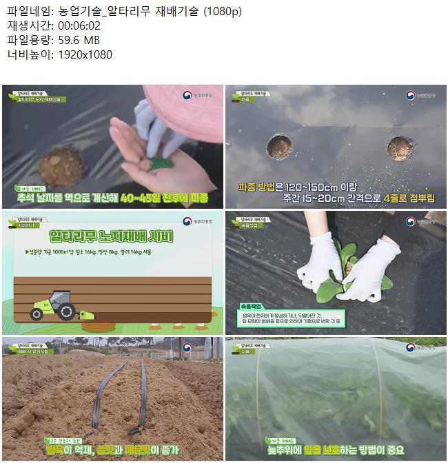 애니메이션 애니메이션 농업기술_알타리무 재배기술 (1080p) 쿠무 2026.04.24 7,565 333 다운로드 추천 333 북마크 공유 다운로드 파일 · 1개 농업기술_알타리무 재배기술 (1080p).mkv FILE 59.6M 다운로드 TAGS #농업기술 #알타리무 #재배기술