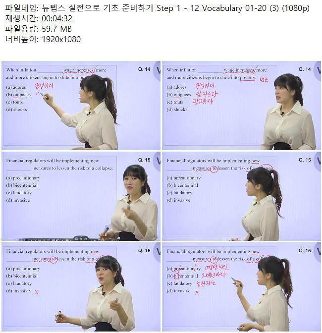 애니메이션 애니메이션 뉴텝스 실전으로 기초 준비하기 Step 1 - 12 Vocabulary 01-20 (3).. 쿠무 2026.04.24 3,738 211 다운로드 추천 211 북마크 공유 다운로드 파일 · 1개 뉴텝스 실전으로 기초 준비하기 Step 1 - 12 Vocabulary 01-20 (3) (1080.. FILE 59.7M 다운로드 TAGS #뉴텝스 #실전으로 #기초 #준비하기 #Step