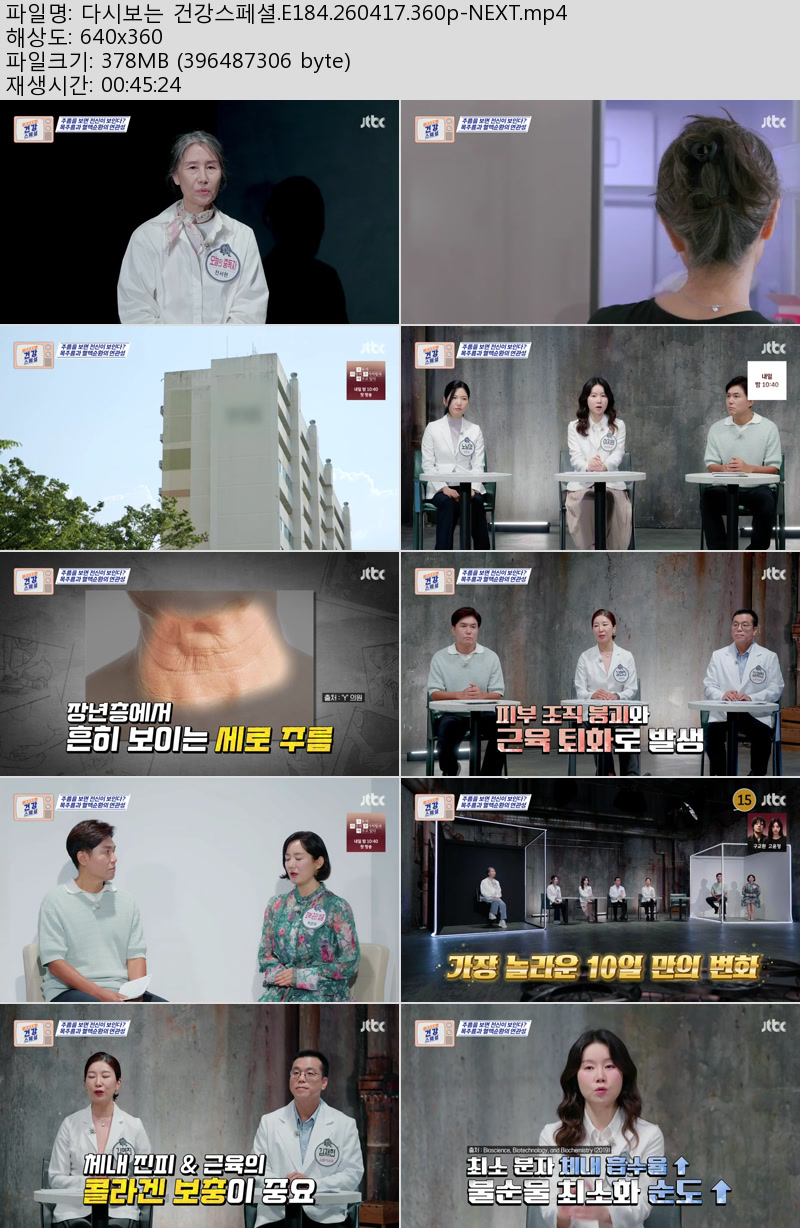 방송/동영상 방송/동영상 다시보는 건강스페셜.E184.260417.360p-NEXT 우야쓰꼬 2026.04.22 5,054 470 다운로드 추천 470 북마크 공유 다운로드 파일 · 1개 다시보는 건강스페셜.E184.260417.360p-NEXT.mp4 FILE 378.1M 다운로드 TAGS #다시보는 #건강스페셜 #E184 #NEXT