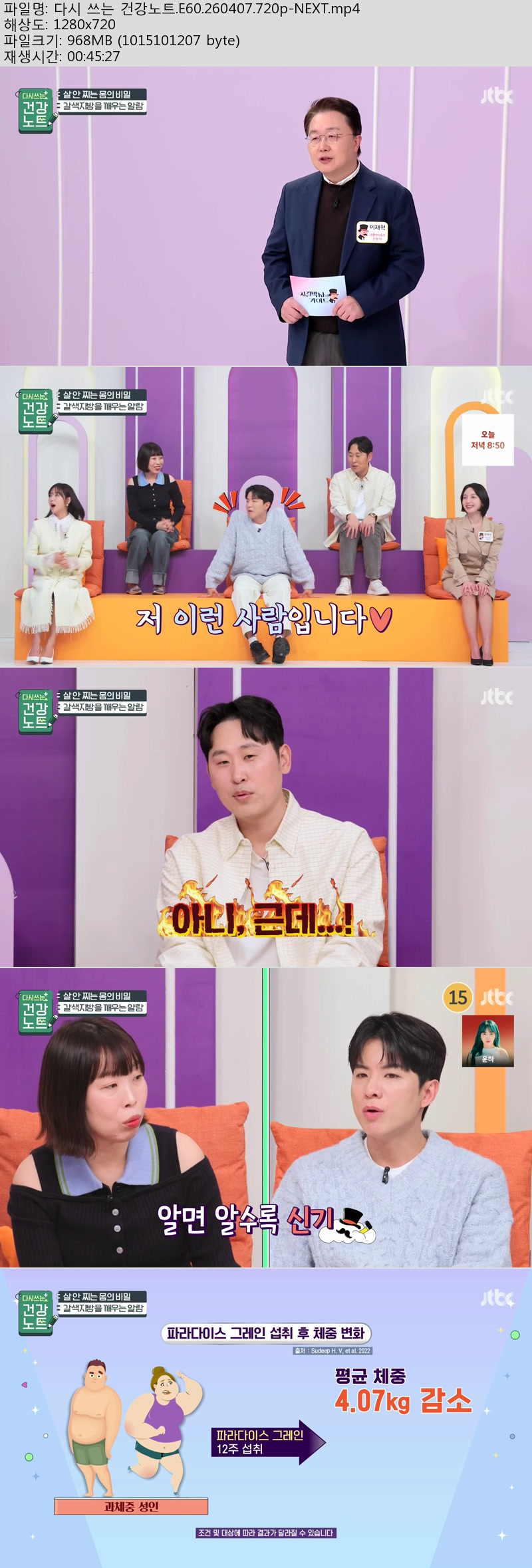 방송/동영상 방송/동영상 다시 쓰는 건강노트.E60.260407.720p-NEXT 그레이트캣 2026.04.24 5,832 252 다운로드 추천 252 북마크 공유 다운로드 파일 · 1개 다시 쓰는 건강노트.E60.260407.720p-NEXT.mp4 FILE 968.1M 다운로드 TAGS #다시 #쓰는 #건강노트 #E60 #NEXT