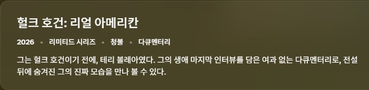 방송/동영상 방송/동영상 [다큐-19] 헐크 호건 리얼 - 아메리칸 시즌1.4부작완결.2026.1080p.. 인운트 2026.04.23 3,090 397 다운로드 추천 397 북마크 공유 다운로드 파일 · 1개 [다큐-19] 헐크 호건 리얼 - 아메리칸 시즌1.4부작완결.2026.1080p.한글.. FILE 4.3G 다운로드 TAGS #다큐 #헐크 #호건 #리얼 #아메리칸