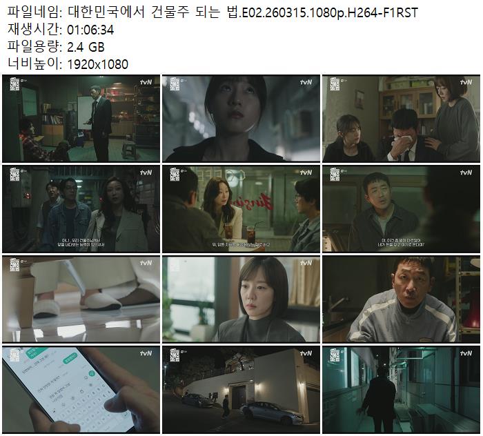 드라마 드라마 대한민국에서 건물주 되는 법.E02.260315.1080p.H264-F1RST zndhkgkgk 2026.04.24 3,103 449 다운로드 추천 449 북마크 공유 다운로드 파일 · 1개 대한민국에서 건물주 되는 법.E02.260315.1080p.H264-F1RST.mp4 FILE 2.4G 다운로드 TAGS #대한민국에서 #건물주 #되는 #E02 #H264