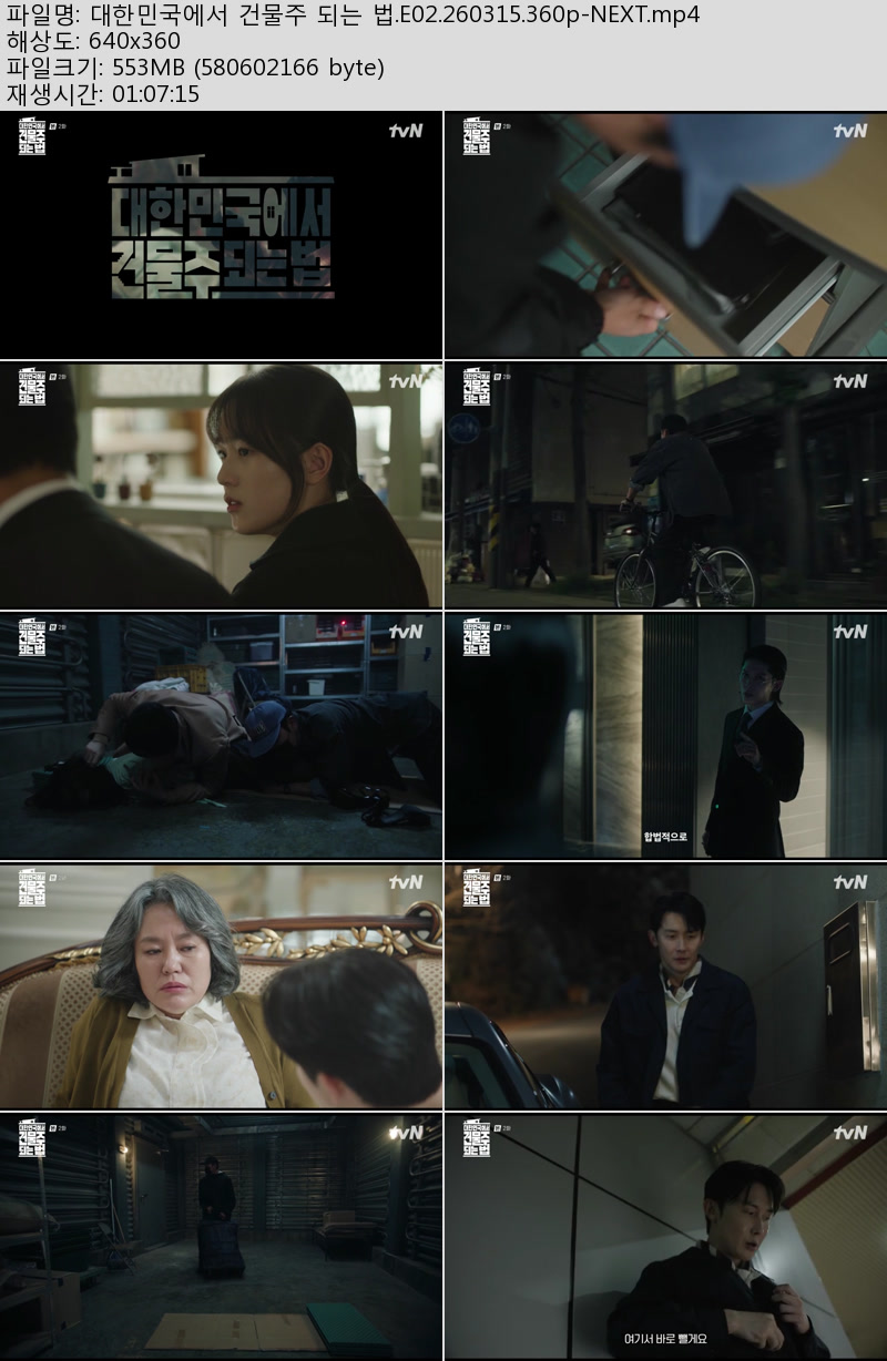 드라마 드라마 대한민국에서 건물주 되는 법.E02.260315.360p-NEXT 우야쓰꼬 2026.04.24 4,439 307 다운로드 추천 307 북마크 공유 다운로드 파일 · 1개 대한민국에서 건물주 되는 법.E02.260315.360p-NEXT.mp4 FILE 553.7M 다운로드 TAGS #대한민국에서 #건물주 #되는 #E02 #NEXT