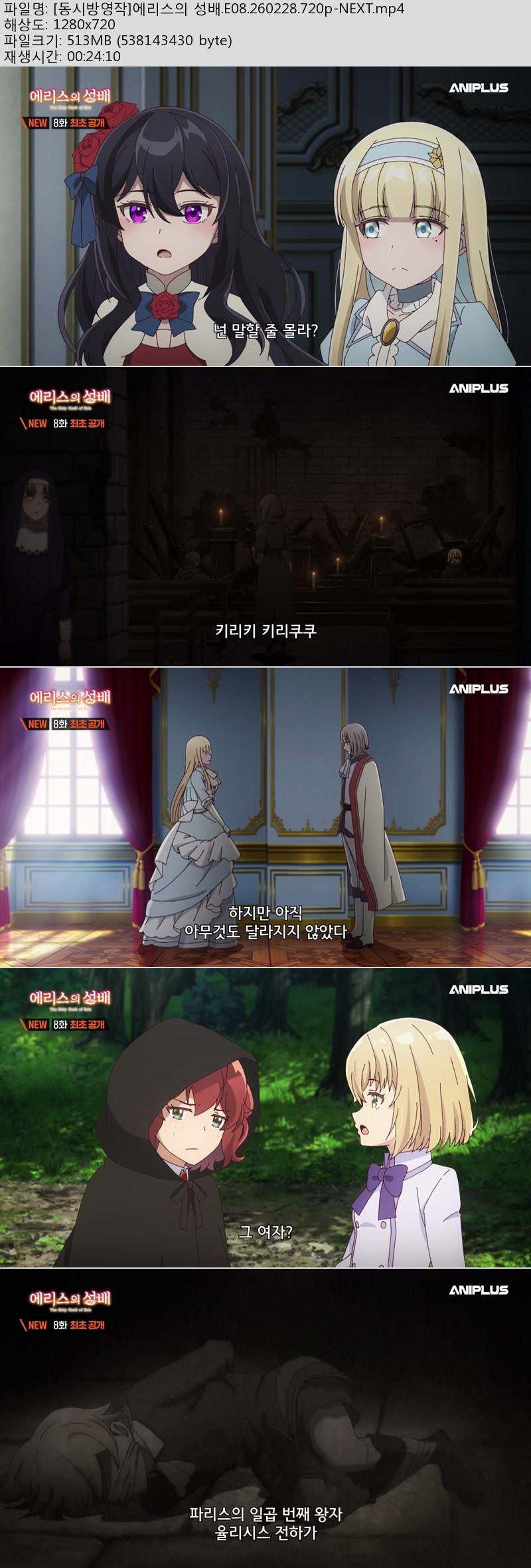 유틸리티 유틸리티 [동시방영작]에리스의 성배.E08.260228.720p-NEXT 그레이트캣 2026.04.24 4,870 356 다운로드 추천 356 북마크 공유 다운로드 파일 · 1개 [동시방영작]에리스의 성배.E08.260228.720p-NEXT.mp4 FILE 513.2M 다운로드 TAGS #동시방영작 #에리스의 #성배 #E08 #NEXT