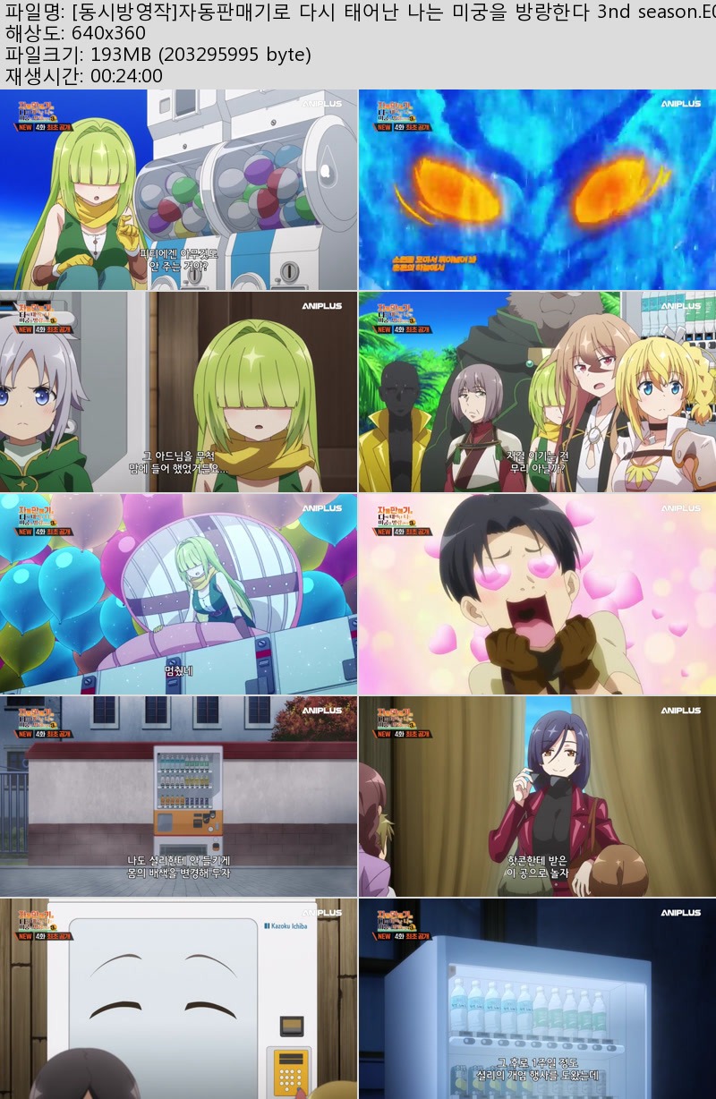 유틸리티 유틸리티 [동시방영작]자동판매기로 다시 태어난 나는 미궁을 방랑한다 3nd .. 우야쓰꼬 2026.04.23 7,550 450 다운로드 추천 450 북마크 공유 다운로드 파일 · 1개 [동시방영작]자동판매기로 다시 태어난 나는 미궁을 방랑한다 3nd season.. FILE 193.9M 다운로드 TAGS #동시방영작 #자동판매기로 #다시 #태어난 #나는