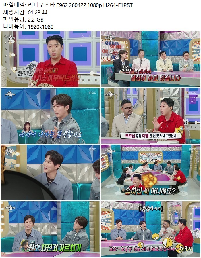 방송/동영상 방송/동영상 라디오스타.E962.260422.1080p.H264 디스사랑 2026.04.23 6,099 453 다운로드 추천 453 북마크 공유 다운로드 파일 · 1개 라디오스타.E962.260422.1080p.H264-F1RST.mp4 FILE 2.2G 다운로드 TAGS #라디오스타 #E962 #H264 #F1RST