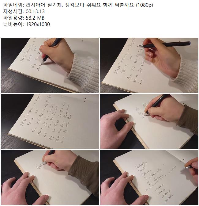 애니메이션 애니메이션 러시아어 필기체, 생각보다 쉬워요 함께 써볼까요 (1080p) 쿠무 2026.04.24 5,532 310 다운로드 추천 310 북마크 공유 다운로드 파일 · 1개 러시아어 필기체, 생각보다 쉬워요! 함께 써볼까요 (1080p).mkv FILE 58.2M 다운로드 TAGS #러시아어 #필기체 #생각보다 #쉬워요 #함께