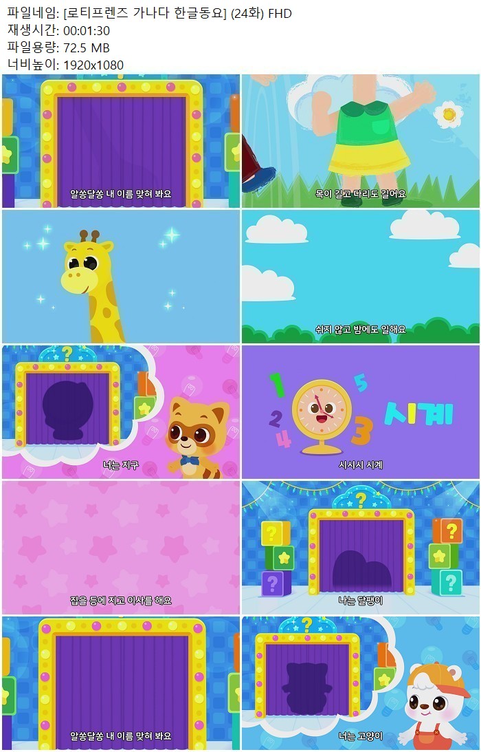 유틸리티 유틸리티 [로티프렌즈 가나다 한글동요] (24화) FHD 디스사랑 2026.04.24 7,790 311 다운로드 추천 311 북마크 공유 다운로드 파일 · 1개 [로티프렌즈 가나다 한글동요] (24화) FHD FILE 72.5M 다운로드 TAGS #로티프렌즈 #가나다 #한글동요 #24화 #FHD