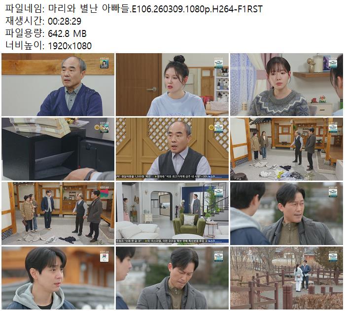 드라마 드라마 마리와 별난 아빠들.E106.260309.1080p.H264-F1RST zndhkgkgk 2026.04.24 3,923 432 다운로드 추천 432 북마크 공유 다운로드 파일 · 1개 마리와 별난 아빠들.E106.260309.1080p.H264-F1RST.mp4 FILE 642.8M 다운로드 TAGS #마리와 #별난 #아빠들 #E106 #H264