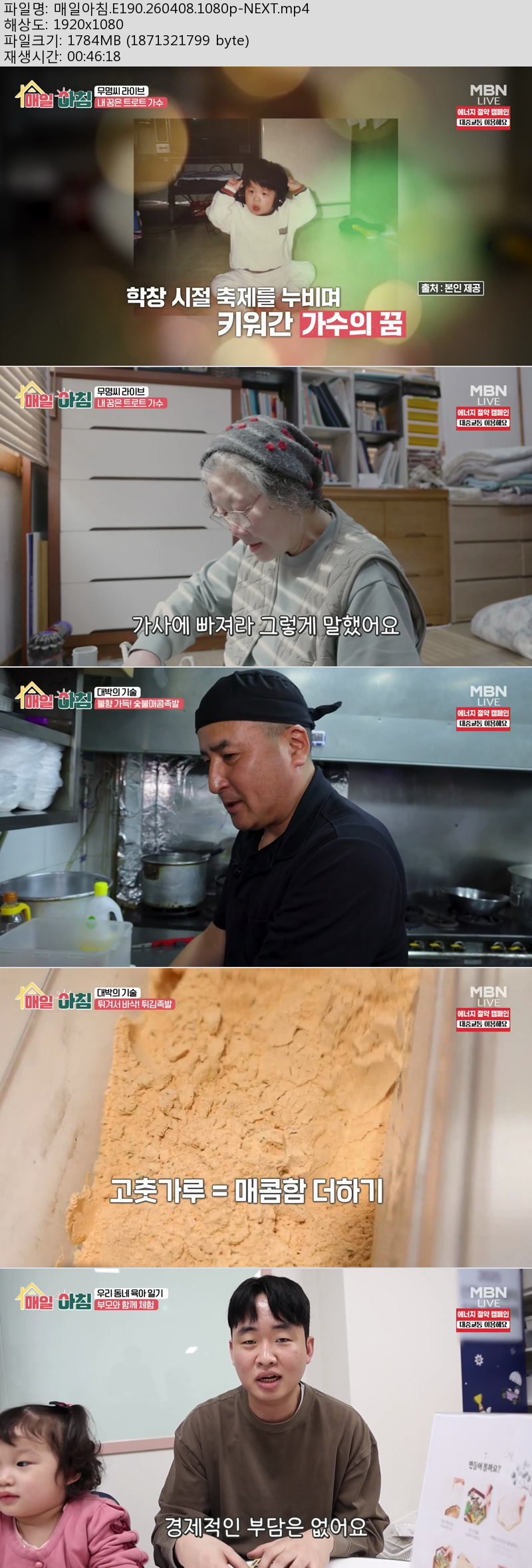 방송/동영상 방송/동영상 매일아침.E190.260408.1080p-NEXT 에이버 2026.04.24 3,598 280 다운로드 추천 280 북마크 공유 다운로드 파일 · 1개 매일아침.E190.260408.1080p-NEXT.mp4 FILE 1.7G 다운로드 TAGS #매일아침 #E190 #NEXT