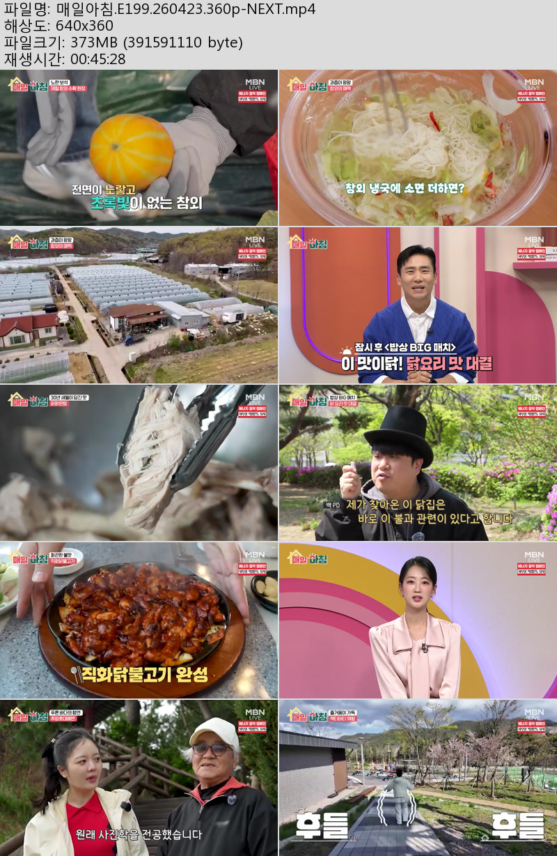 방송/동영상 방송/동영상 매일아침.E199.260423.360p-NEXT 우야쓰꼬 2026.04.23 6,836 496 다운로드 추천 496 북마크 공유 다운로드 파일 · 1개 매일아침.E199.260423.360p-NEXT.mp4 FILE 373.5M 다운로드 TAGS #매일아침 #E199 #NEXT