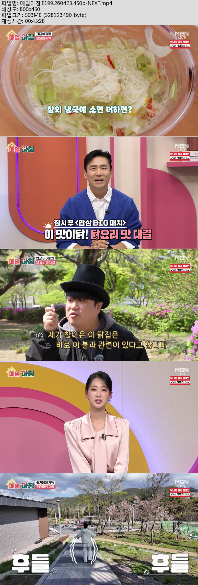 방송/동영상 방송/동영상 매일아침.E199.260423.450p-NEXT 내사랑비타민 2026.04.23 6,571 215 다운로드 추천 215 북마크 공유 다운로드 파일 · 1개 매일아침.E199.260423.450p-NEXT.mp4 FILE 503.7M 다운로드 TAGS #매일아침 #E199 #NEXT