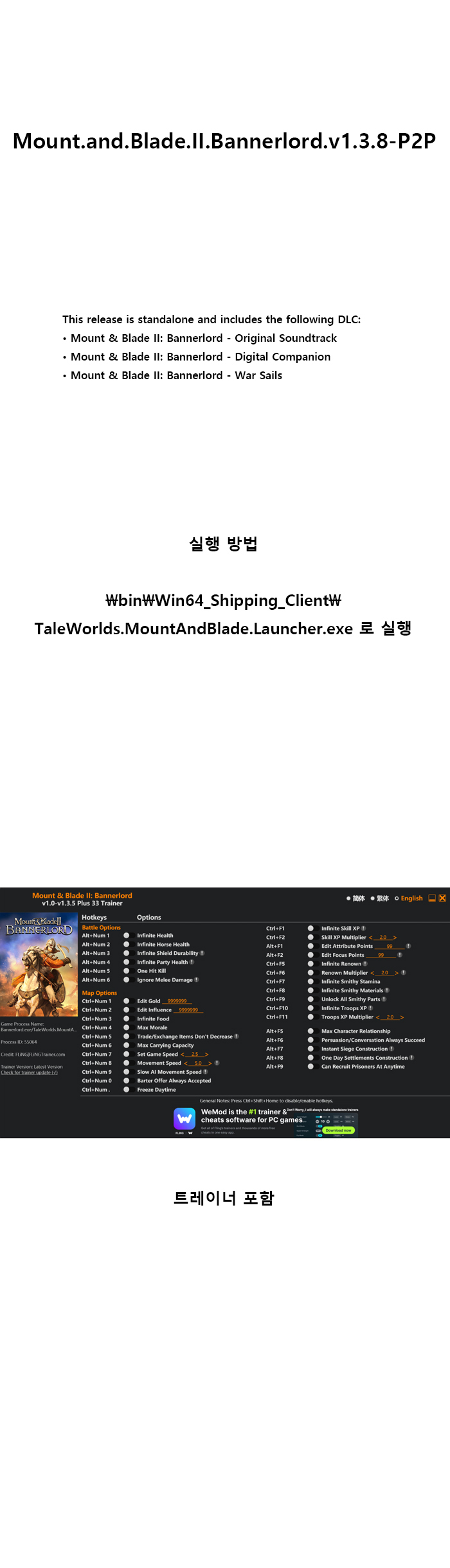 도서 도서 [무설치] 마운트 앤 블레이드2 V1.3.8+트레이너 한글 알뜰폰 2026.04.25 4,298 211 다운로드 추천 211 북마크 공유 다운로드 파일 · 1개 [무설치] 마운트 앤 블레이드2 V1.3.8+트레이너 한글 FILE 61.2G 다운로드 TAGS #무설치 #마운트 #블레이드2 #V1 #트레이너