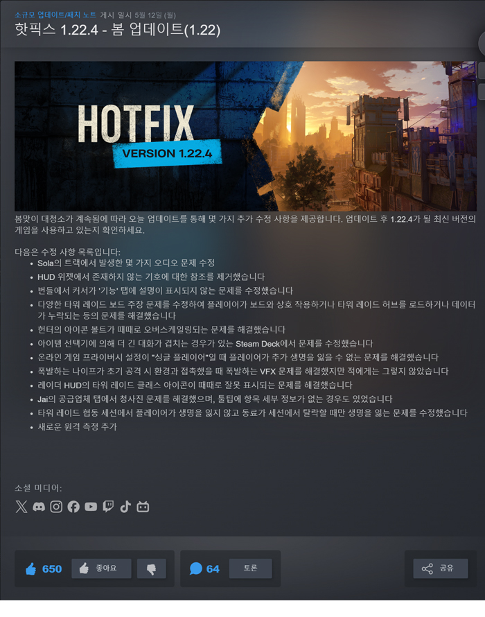 도서 도서 [무설치] -핫픽스1.22.4-봄업데이트-다잉라이트2-스테이 휴먼+트레.. 알뜰폰 2026.04.25 6,355 485 다운로드 추천 485 북마크 공유 다운로드 파일 · 1개 [무설치] -핫픽스1.22.4-봄업데이트-다잉라이트2-스테이 휴먼+트레이너 .. FILE 73.1G 다운로드 TAGS #무설치 #핫픽스1 #봄업데이트 #다잉라이트2 #스테이