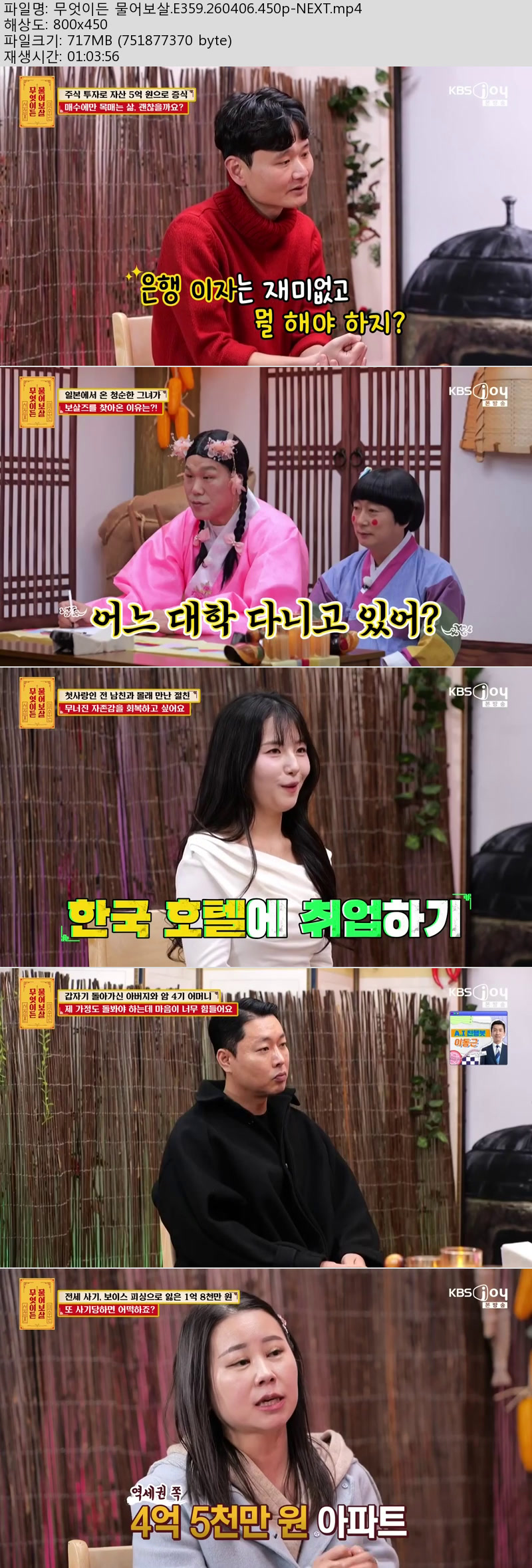 방송/동영상 방송/동영상 무엇이든 물어보살.E359.260406.450p-NEXT 긍정고수 2026.04.24 5,317 294 다운로드 추천 294 북마크 공유 다운로드 파일 · 1개 무엇이든 물어보살.E359.260406.450p-NEXT.mp4 FILE 717.0M 다운로드 TAGS #무엇이든 #물어보살 #E359 #NEXT