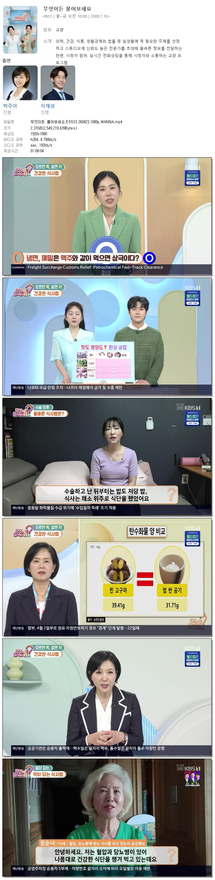 방송/동영상 방송/동영상 무엇이든 물어보세요.E5933.260423.1080p.WANNA 꽁짜는없다 2026.04.23 3,801 445 다운로드 추천 445 북마크 공유 다운로드 파일 · 1개 무엇이든 물어보세요.E5933.260423.1080p.WANNA.mp4 FILE 2.4G 다운로드 TAGS #무엇이든 #물어보세요 #E5933 #WANNA