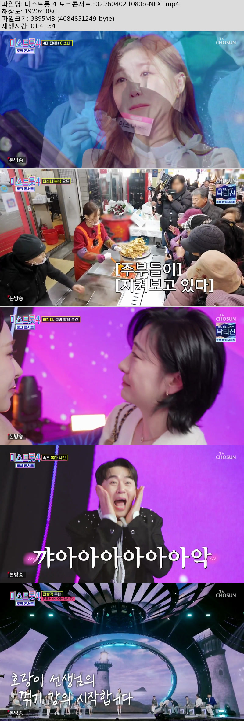 방송/동영상 방송/동영상 미스트롯 4 토크콘서트.E02.260402.1080p-NEXT 미아아빠 2026.04.24 5,118 329 다운로드 추천 329 북마크 공유 다운로드 파일 · 1개 미스트롯 4 토크콘서트.E02.260402.1080p-NEXT.mp4 FILE 3.8G 다운로드 TAGS #미스트롯 #토크콘서트 #E02 #NEXT