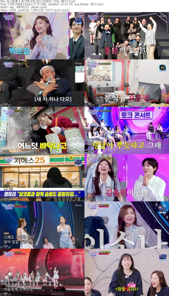 방송/동영상 방송/동영상 미스트롯 4 토크콘서트.E02.260402.720p-NEXT sukyungyi 2026.04.24 7,031 265 다운로드 추천 265 북마크 공유 다운로드 파일 · 1개 미스트롯 4 토크콘서트.E02.260402.720p-NEXT.mp4 FILE 2.2G 다운로드 TAGS #미스트롯 #토크콘서트 #E02 #NEXT