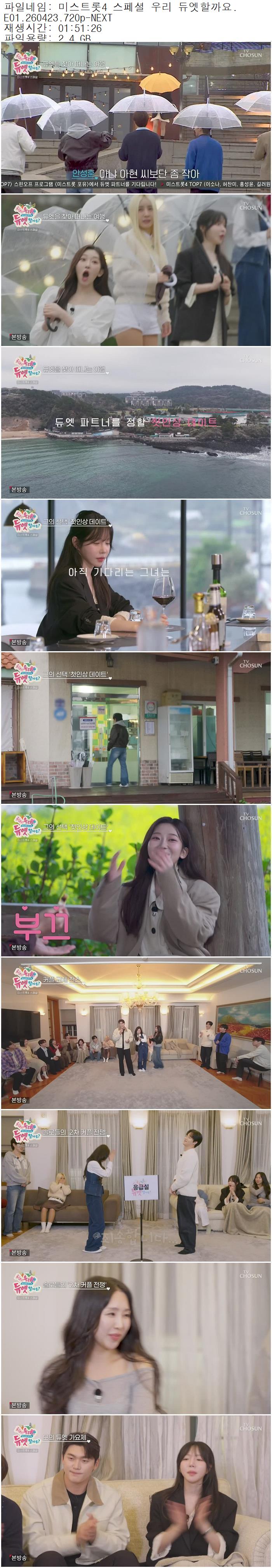방송/동영상 방송/동영상 미스트롯4 스페셜 우리 듀엣할까요.E01.260423.720p-NEXT lizard21 2026.04.23 3,673 438 다운로드 추천 438 북마크 공유 다운로드 파일 · 1개 미스트롯4 스페셜 우리 듀엣할까요.E01.260423.720p-NEXT.mp4 FILE 2.4G 다운로드 TAGS #미스트롯4 #스페셜 #우리 #듀엣할까요 #E01