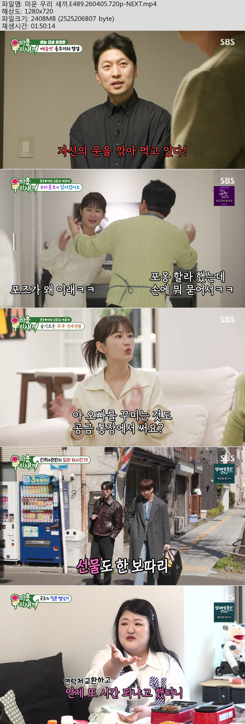 방송/동영상 방송/동영상 미운 우리 새끼.E489.260405.720p-NEXT 방송다좋아 2026.04.24 5,434 216 다운로드 추천 216 북마크 공유 다운로드 파일 · 1개 미운 우리 새끼.E489.260405.720p-NEXT.mp4 FILE 2.4G 다운로드 TAGS #미운 #우리 #새끼 #E489 #NEXT
