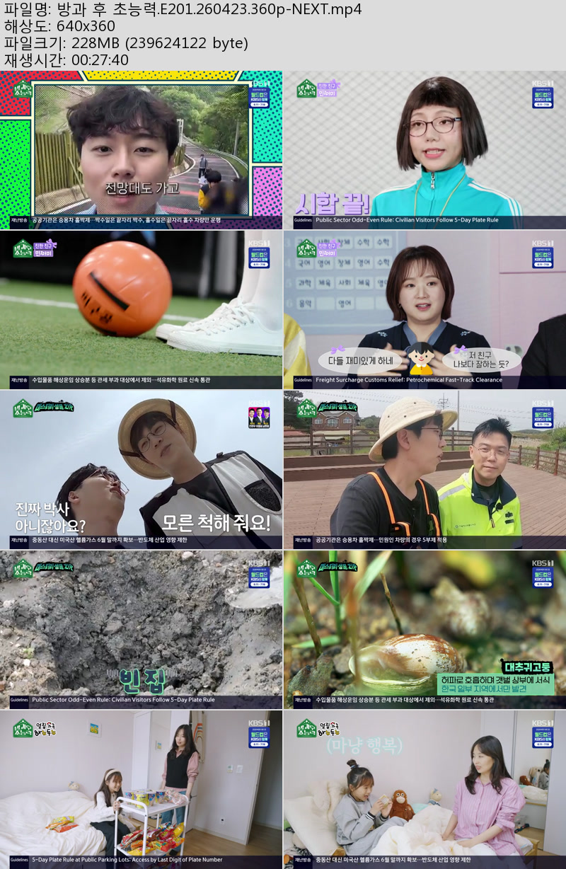 방송/동영상 방송/동영상 방과 후 초능력.E201.260423.360p-NEXT 우야쓰꼬 2026.04.23 4,496 284 다운로드 추천 284 북마크 공유 다운로드 파일 · 1개 방과 후 초능력.E201.260423.360p-NEXT.mp4 FILE 228.5M 다운로드 TAGS #방과 #초능력 #E201 #NEXT