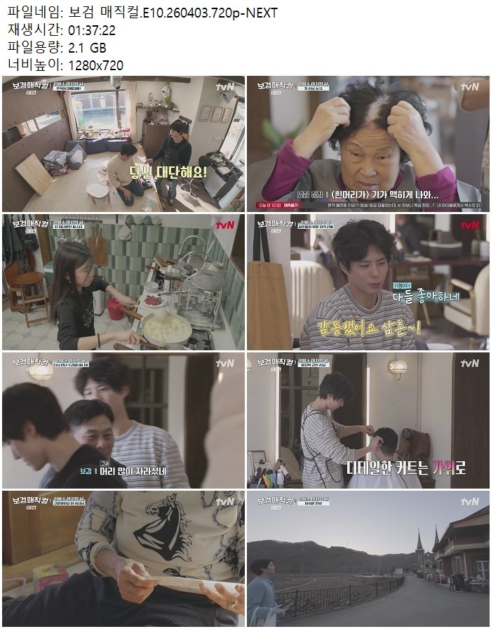 방송/동영상 방송/동영상 보검 매직컬.E10.260403.720p-NEXT 디스사랑 2026.04.24 3,462 366 다운로드 추천 366 북마크 공유 다운로드 파일 · 1개 보검 매직컬.E10.260403.720p-NEXT.mp4 FILE 2.1G 다운로드 TAGS #보검 #매직컬 #E10 #NEXT