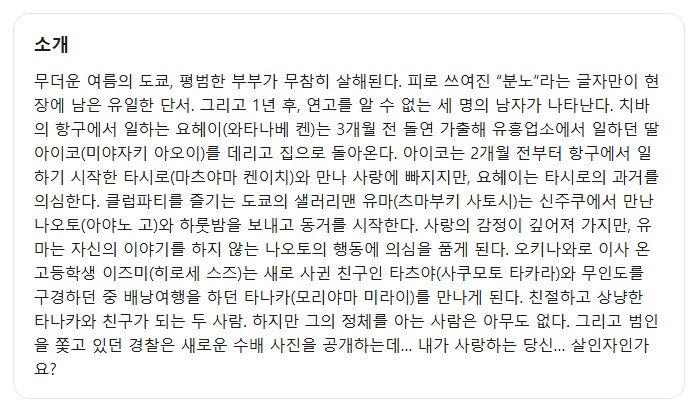 영화 영화 [분노] 의문의 살인사건 얼굴을 바꾼 범인 7명의 용의자 자체자막 pksy2313 2026.04.24 6,605 346 다운로드 추천 346 북마크 공유 다운로드 파일 · 1개 [분노] 의문의 살인사건 얼굴을 바꾼 범인 7명의 용의자 자체자막 FILE 1.9G 다운로드 TAGS #분노 #의문의 #살인사건 #얼굴을 #바꾼