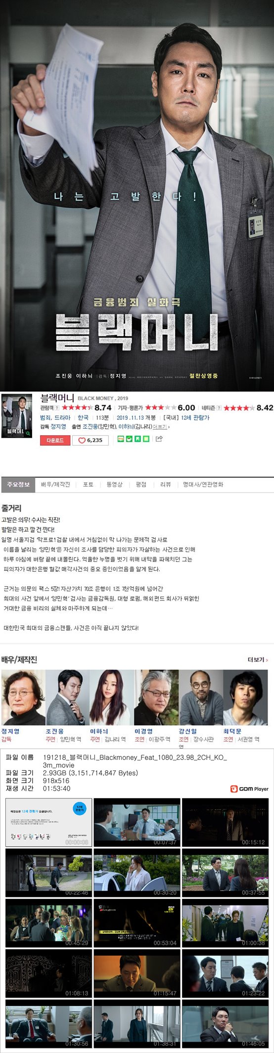 영화 영화 [블랙머니]조진웅 이하늬 금융범죄실화 나는 고발한다 imbc7 2026.04.24 4,369 308 다운로드 추천 308 북마크 공유 다운로드 파일 · 1개 191218_블랙머니_Blackmoney_Feat_1080_23.98_2CH_KO_3m_movie.mp4 FILE 2.9G 다운로드 TAGS #블랙머니 #조진웅 #이하늬 #금융범죄실화 #나는