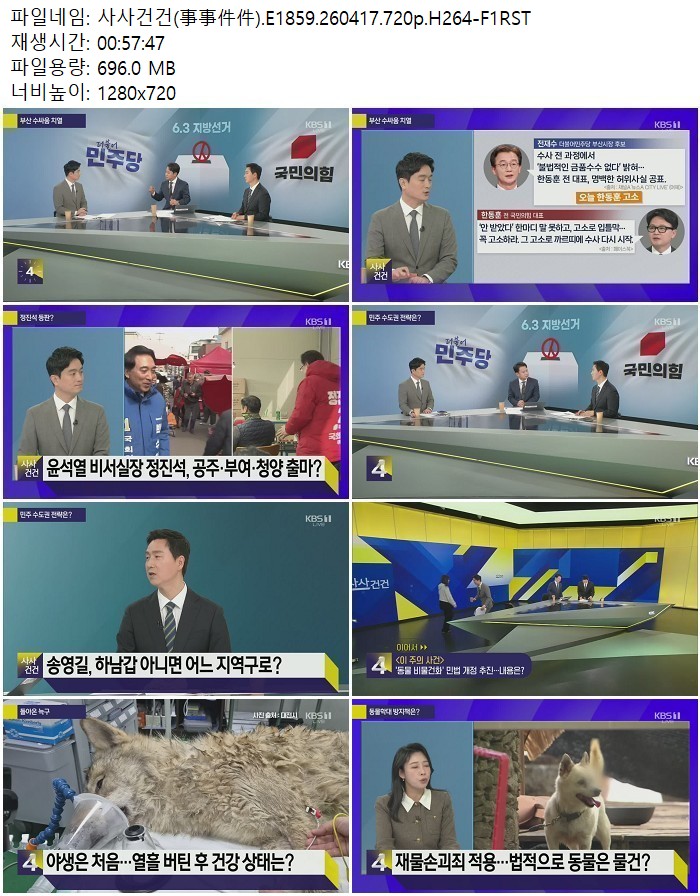 방송/동영상 방송/동영상 사사건건(事事件件).E1859.260417.720p.H264 디스사랑 2026.04.22 6,254 398 다운로드 추천 398 북마크 공유 다운로드 파일 · 1개 사사건건(事事件件).E1859.260417.720p.H264-F1RST.mp4 FILE 696.0M 다운로드 TAGS #사사건건 #事事件件 #E1859 #H264 #F1RST